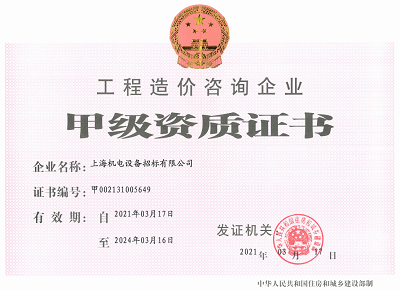 上海市住建委授予《工程造價咨詢企業(yè)資質(zhì)證書》,拓寬業(yè)務(wù)領(lǐng)域,實現(xiàn)了服務(wù)鏈的進(jìn)一步延伸。