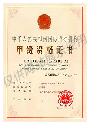 國際招標機構(gòu)甲級資格證書
