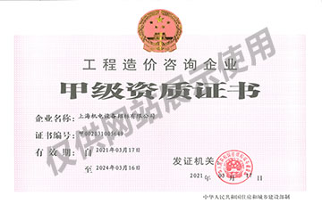 工程造價咨詢企業(yè)甲級資質(zhì)證書